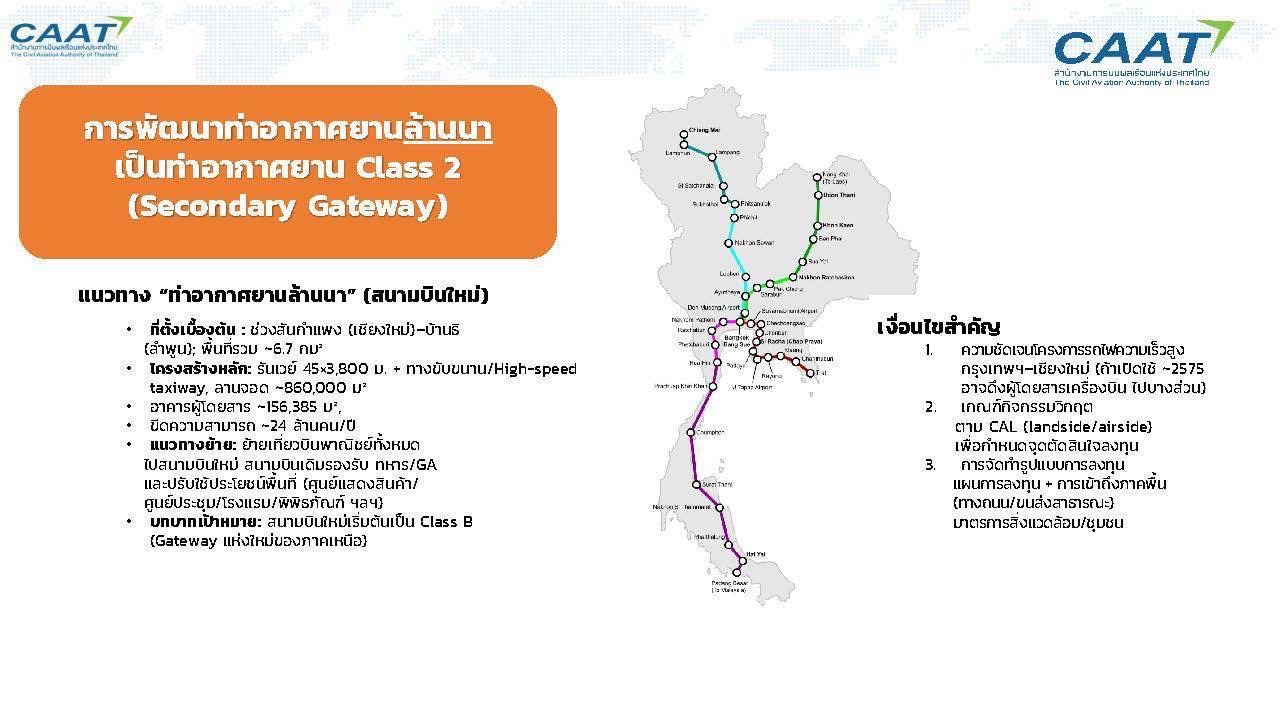 กพท. กางโรดแมป แผนแม่บทการจัดตั้งสนามบินพาณิชย์ของประเทศ (ฉบับปรับปรุง) - ข่าวความคืบหน้าสนามบินเชียงใหม่แห่งที่2 พ.ศ. 2569